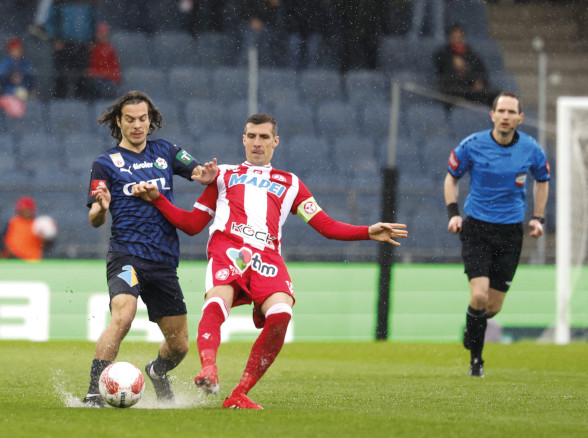 Diese Runde begann für die Tiroler gleich mit der schweren Auswärtspartie in Graz gegen den GAK (Bild 3, roter Dress). Eines vorneweg – es war kein Match für Fußball-Ästheten. Bei starkem Regen waren beide Teams hauptsächlich darum bemüht, nur ja keinen frühen Treffer zu kassieren, große Chancen blieben Mangelware. Glück hatte die WSG unmittelbar nach der Pause, als Martin Kreuzriegler nach einem Eckball per Kopf nur die Querlatte getroffen hatte, während ein Treffer von Lukas Hinterseer in der 70. Minute wegen Abseits aberkannt worden war. Das torlose Remis nach 90 Minuten war die logische Konsequenz.