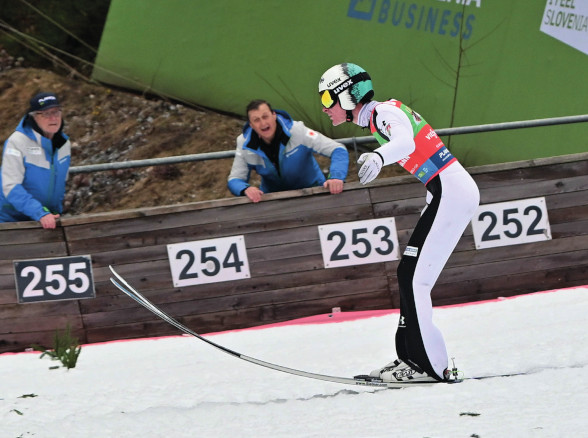 Grund zum Feiern hatte auch Domen Prevc (Bild 3), der im Rahmen des Weltcupfinales mit 254,5 Metern Stefan Kraft als Weltrekordhalter ablöste.