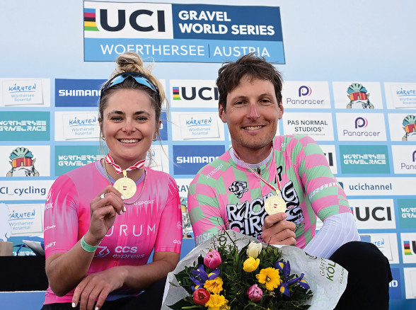 Tiroler Sieg im Doppelpack – Jana Gigele (links) und der Wahlaldranser Lukas Pöstlberger (rechts) hatten sich bei den österreichischen Gravelrad-Meisterschaften am Wörthersee die Titel geholt. „Das Rennen war unglaublich chaotisch. Ich dachte schon, es wäre verloren, aber die Spitze ist immer wieder zusammengekommen“, meinte Gigele. Bei den Männern hat Pöstlberger seine zweite Radsportkarriere gefunden. Schon vor dem Start war der Giro-d’Italia-Etappensieger heiß auf den Tagessieg: „Als drei Fahrer in der ersten Runde das Tempo verschärften, dachte ich, das ist viel zu früh. Wir haben nachgesetzt und alles gegeben.“