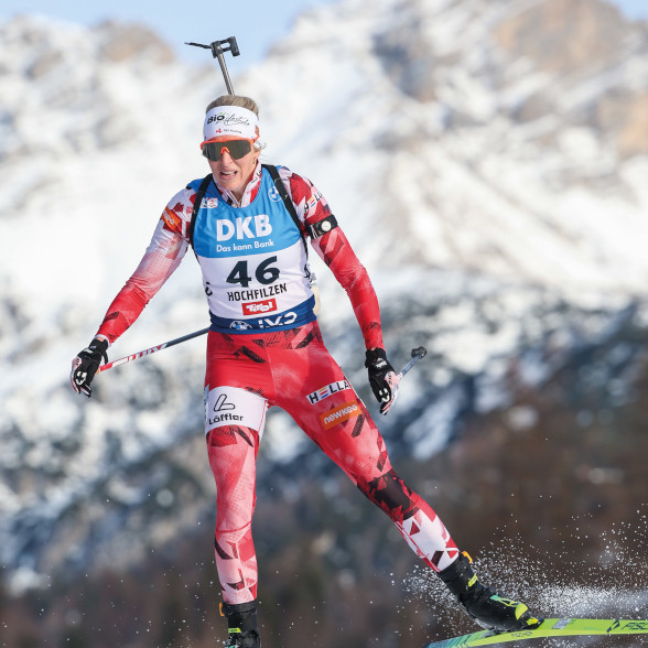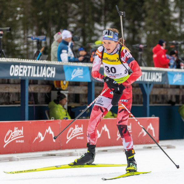 Auch Lisa Hauser, zuletzt in Östersund noch Siegerin, erlebte ein bitteres Heimspiel. Fünf Strafrunden warfen die Ex-Weltmeisterin auf Rang 41 zurück. „Man muss sich einzelne Aspekte heraussuchen, die positiv waren. Läuferisch passt es gut. Sicher hätte ich gerne eine bessere Leistung gezeigt, aber ich bin gar nicht so unzufrieden“, meinte Hauser (Bild 4).