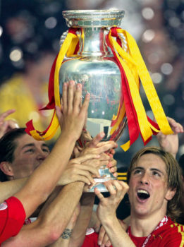 GEPA-2906082413 - WIEN,AUSTRIA,29.JUN.08 - FUSSBALL - UEFA Europameisterschaft, EURO 2008, Deutschland vs Spanien, GER vs ESP, Finale, Siegerehrung. Bild zeigt den Jubel der spanischen Nationalmannschaft mit Fernando Torres und dem Henry Delaunay Pokal. Keyword: Trophaee. Foto: GEPA pictures/ Pro Shots/ Dennis Spaan - Achtung - Nutzungsrechte nur fuer oesterreichische Kunden ATTENTION - COPYRIGHT FOR AUSTRIAN CLIENTS ONLY