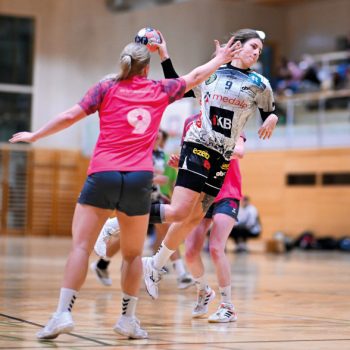 Es hatte etwas gedauert, doch nach 20 spannenden Minuten hatte sich das Nordtiroler Serie-A2-Derby zur klaren Sache entwickelt. Dann gab es am klaren 46:23-Erfolg von medalp Innsbruck Handball Tirol (weißer Dress) bei Telfs nichts mehr zu rütteln. Es war der vierte Sieg in Folge. Dabei hatte das junge Telfer Team zunächst stark dagegengehalten, sogar 2:1 geführt und mehrfach ausgleichen können. „Wir wollten mutig auftreten und haben das anfangs gut geschafft“, sagte Telfs-Spielerin Selina Maiss. Erst kurz vor der Pause setzte sich Innsbruck ab – von 13:12 auf 20:13. Nach dem Seitenwechsel brachen alle Dämme: Vier schnelle Tore zum 24:13, dann eine 12-minütige Telfer Torflaute. „In der zweiten Hälfte haben wir unser Tempo voll ausgespielt“, freute sich Innsbrucks Katharina Kofler.