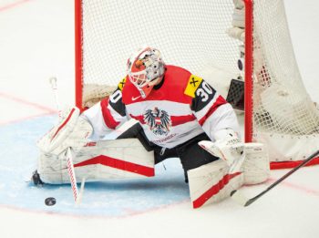 Lieferte gegen Slowenien eine großartige Partie – Österreichs Goalie David Kickert / Foto: APA/AFP/Jonathan Nackstrand