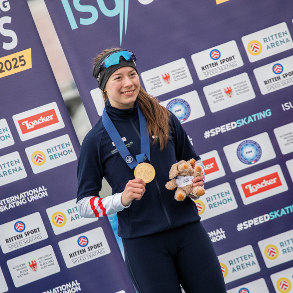 Jeannine Rosner lief wieder einmal in einer eigenen Liga. Nachdem sie schon über 1500-Meter-Gold jubeln durfte, legte die Tirolerin bei der Eisschnelllauf-Junioren-WM am Ritten in Klobenstein noch zwei Titel nach. Die 18-jährige Innsbruckerin gewann auch über 1000 und 3000 Meter und sicherte sich somit souverän den Sieg in der Allround-Wertung. Mit den vier WM-Goldenen, alle durch die 18-jährige Innsbruckerin Jeannine Rosner, gewann Österreich den Medaillenspiegel bei den Titelkämpfen der Junioren in der Arena Ritten.