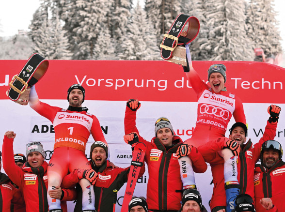 Die Schweizer Skifans im Feiermarathon – ausschlaggebend dafür natürlich das Gastspiel der Skiherren bei den Klassikern in Adelboden und Wengen. Im Mittelpunkt der Festlichkeiten wie so oft in letzter Zeit: Marco Odermatt und Loïc Meillard, die im RTL am Kuonisbergli für den bereits vierten Doppelsieg der Schweizer Herren in diesem Winter verantwortlich zeichneten. Überragend dabei einmal mehr Odermatt mit seinem vierten Sieg in Serie in Adelboden. Da blieb – abgesehen vom Italiener Luca De Aliprandini – dem Rest der Skiwelt, auch den Österreichern, nur die Zuschauerrolle. Marco Schwarz wurde als bester Neunter.