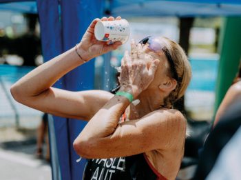 Diese Abkühlung hatte sich Carina Wasle bei den Staatsmeisterschaften im Crosstriathlon nach ihrer Titelverteidigung redlich verdient / Foto: GEPA pictures