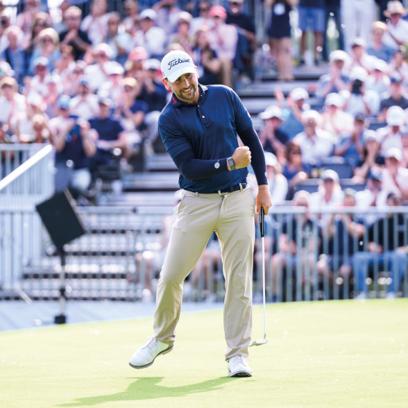 Maximilian Steinlechner (Bild 1) spielte als einziger österreichischer Golf-Profi beim Heimturnier der DP World Tour in Henndorf am Wallersee um eine Top-Platzierung. Dem 25-jährigen Tiroler war am sogenannten Moving-Day bei den Austrian Alpine Open auf dem GC Altentann eine 66er-Runde gelungen und damit der Vorstoß auf Rang sieben für den Finaltag. Matthias Schwab war weit zurückgefallen (57.), Bernd Wiesberger hatte sich nur leicht auf Platz 50 verbessern können. Steinlechner mit einem Lächeln: „Ja, die letzten zwei Runden waren ziemlich solide, das macht schon Spaß.“