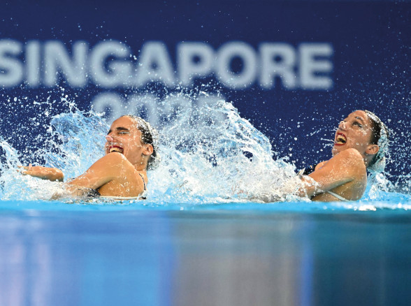 Für die einzige Medaille bei diesen Titelkämpfen sorgten die Synchronschwimmerinnen (Bild 1). Anna-Maria und Eirini Alexandri eroberten in beeindruckendem Stil im Technik-Duett die Goldmedaille. Und das mit dem Rekord von 307,1451 Punkten – dahinter landeten China (301,4057) und Russland (300,2183): „Ich weiß gar nicht, wie ich meine Gefühle beschreiben soll“, suchte Anna-Maria nach Worten, Eirini ergänzte: „Es ist unglaublich.“ Im Juni hatten sich die Alexandris auch schon den EM-Titel gesichert, die Saison hätte nicht besser laufen können. Auf WM-Ebene war es der zweite Titel.