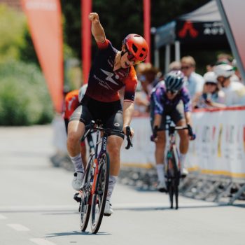 Und bei den Damen blieb auch der Meistertitel auf der Straße in der Familie Schweinberger. Zwei Tage nach dem Zeitfahr-Sieg von Christina holte sich ihre Zwillingsschwester Kathrin (Bild unten in Jubelpose) Platz eins. Die Jenbacherin siegte nach 103,2 Kilometern vor Elisa Winter und Carina Schrempf.