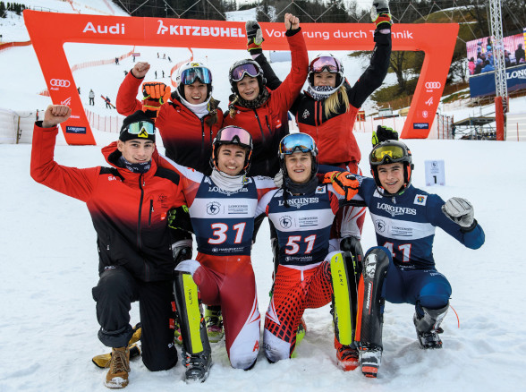 Gerade dort, wo viele Jugendliche mitten in der Pubertät mit dem Skisport aufhören, fängt das Junior Race am Hahnenkamm an. „Im Alter von 15, 16 Jahren steigen so viele aus. Genau da wollten wir ansetzen und etwas dagegen tun“, erklärte Michael Huber, Präsident des Kitzbüheler Skiclubs die 18. Auflage des Nachwuchs-Skibewerbs. Mit einer extra beschneiten Strecke am Ganslernhang konnten sich 60 Nachwuchs-Hoffnungen aus acht Nationen auf der Piste in Szene setzen. Dabei ging es gemeinsam um den Sieg, je drei Mädchen und drei Buben (Jahrgang 2009 und 2010) waren im Slalom am Start. Der Sieg ging an die Gastgeber*innen.